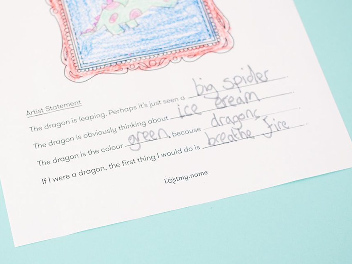 Why IS that pirate raising his arms? And what might the dragon be thinking? Time to find out. This fun idea has the power to give your budding virtuoso a boost of confidence. You don’t just want a piece of art – you want a piece of the artist, too!